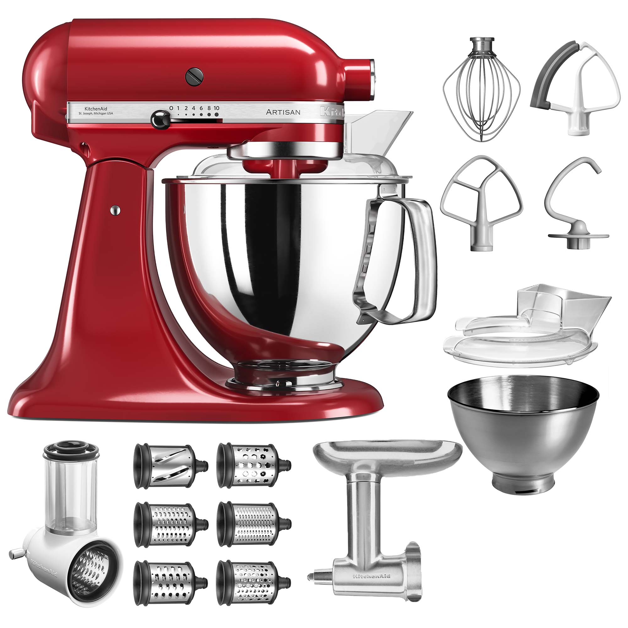 Ihre Auswahl: Küchenmaschine 175 | empire rot | Gemüseschneider 6 Trommeln / Fleischwolf Metall - ändern