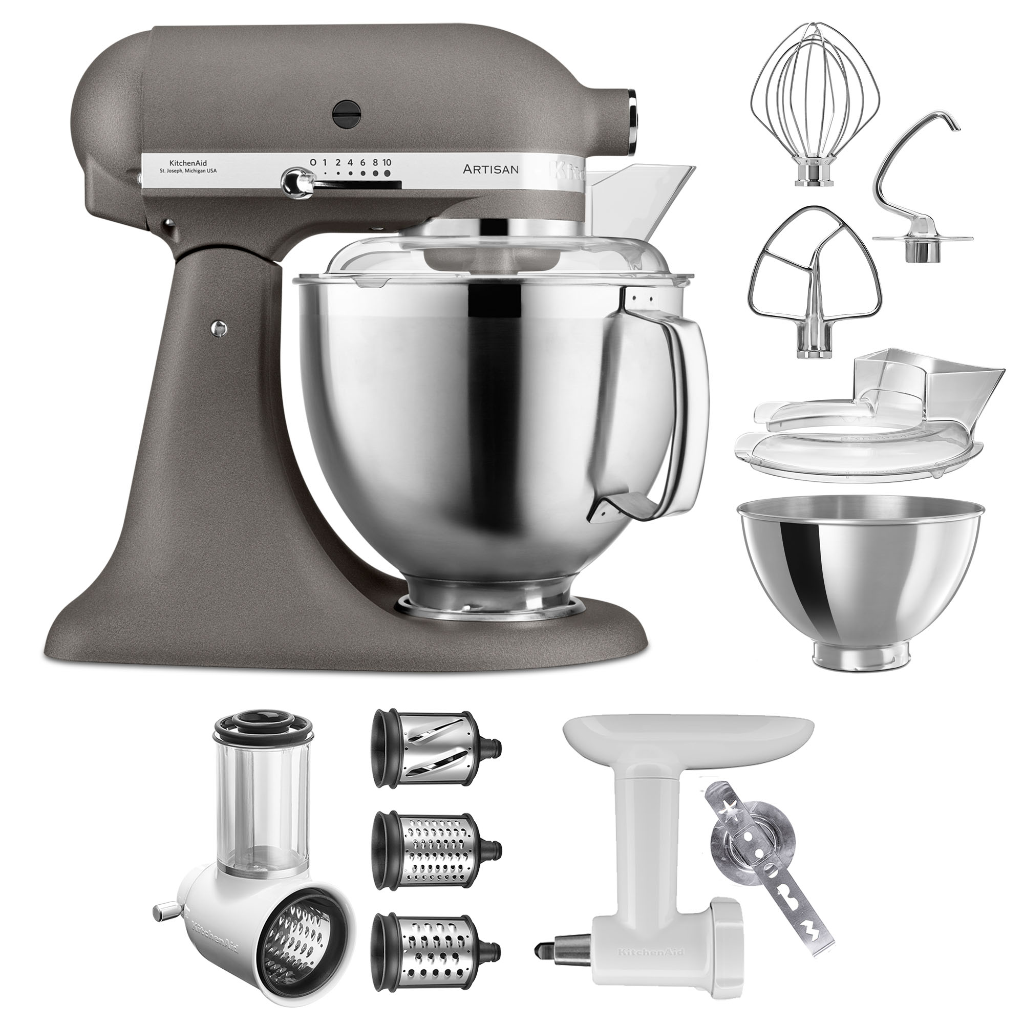 Ihre Auswahl: Küchenmaschine 185 | imperial grey | Gemüseschneider 3 Trommeln / Fleischwolf Kunststoff - ändern