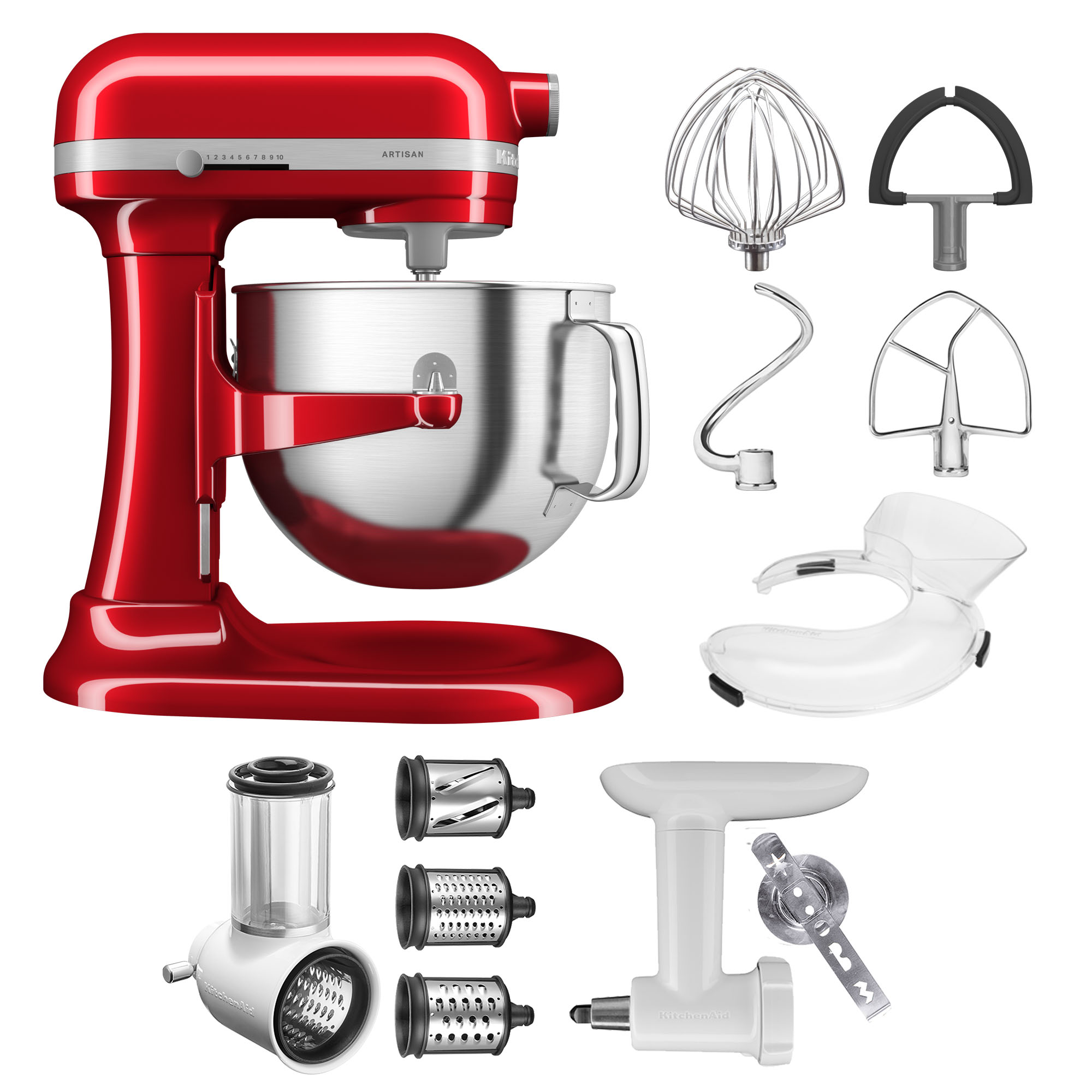 Ihre Auswahl: Küchenmaschine 6,6l | liebesapfelrot | Gemüseschneider 3 Trommeln / Fleischwolf Kunststoff - ändern